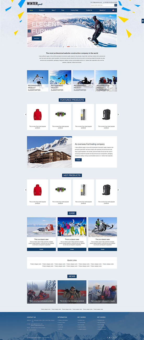响应式滑雪户外用品运动商品英文外贸网站模板WN6+