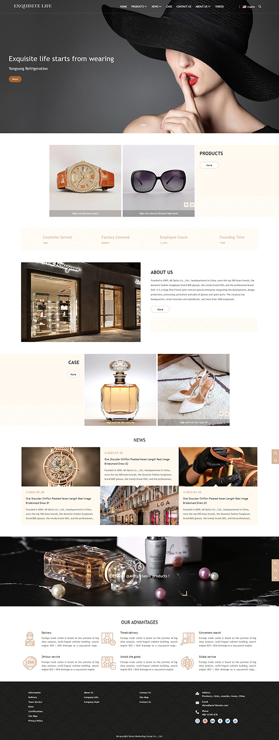 响应式化妆品饰品奢侈品香水手表英文外贸网站模板WN115