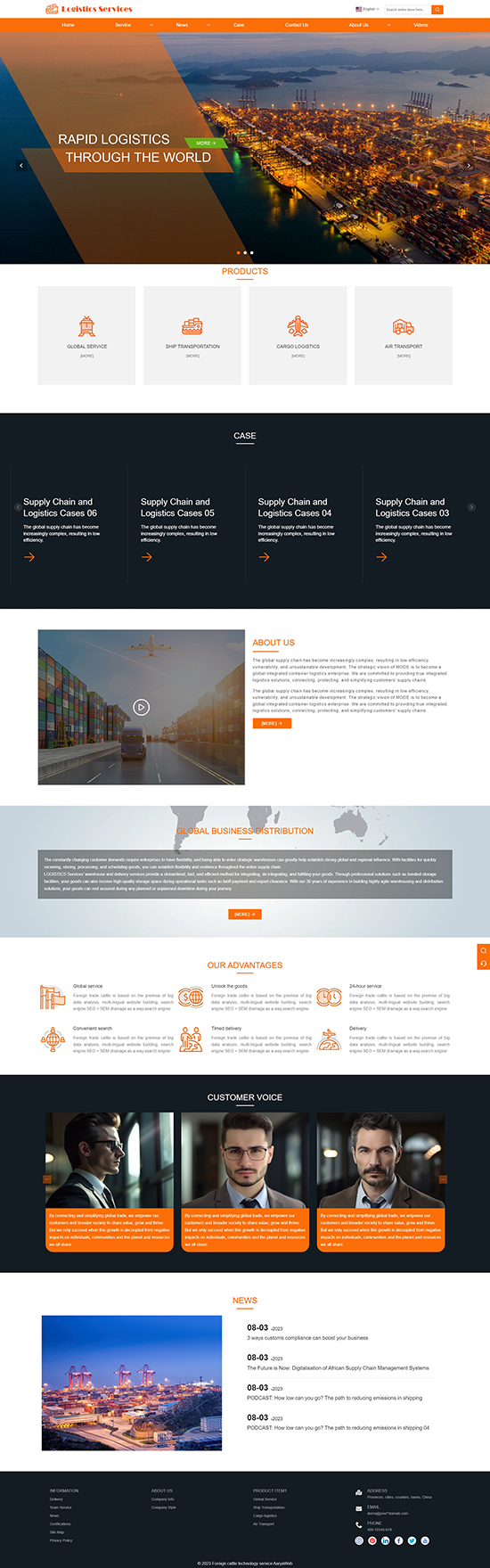 响应式物流包装货运运输快递英文外贸网站模板WN116