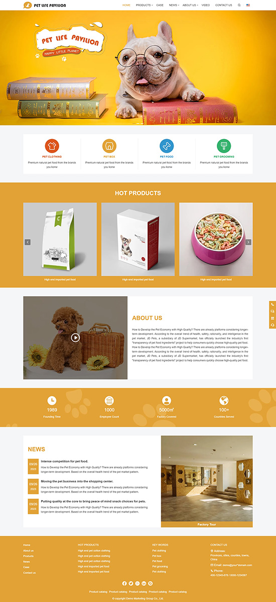 响应式宠物用品狗粮猫粮英文外贸网站模板WN23