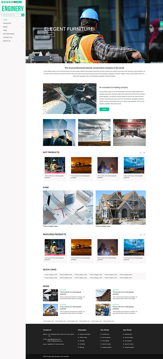 响应式建筑工程机械设备英文外贸网站模板WN14+