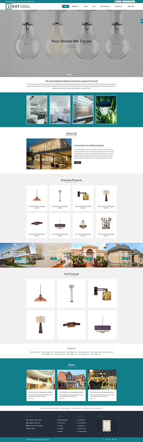 响应式灯光照明灯饰灯具摆件英文外贸网站模板WN20+