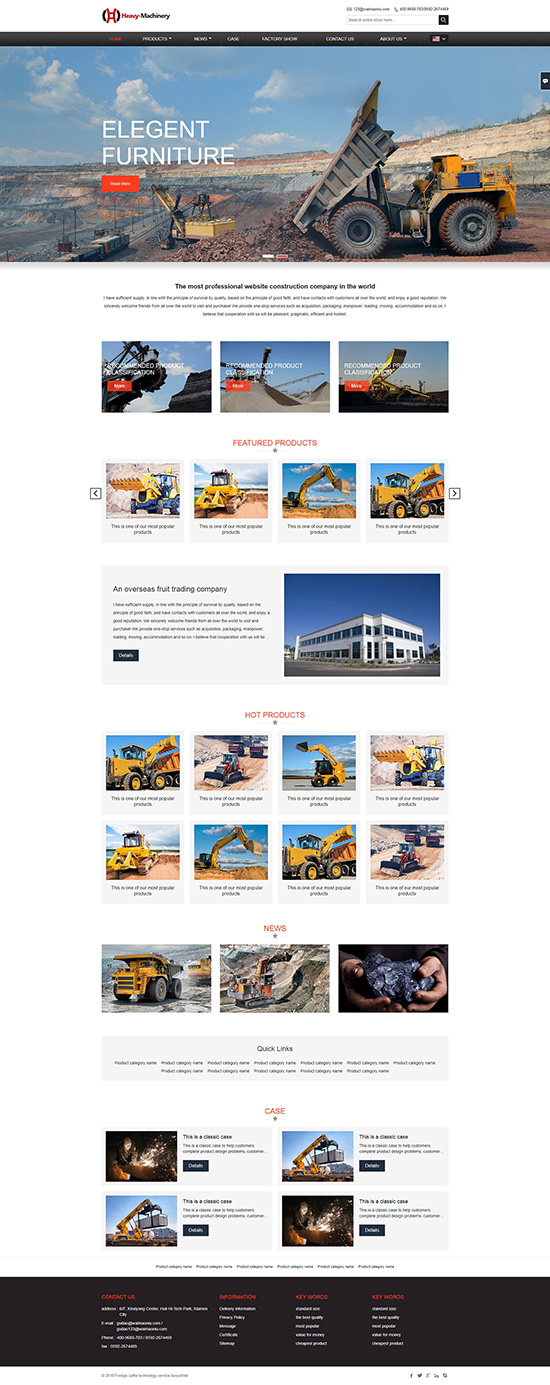 响应式大型农业机械设备挖掘机工程车英文外贸网站模板WN3+